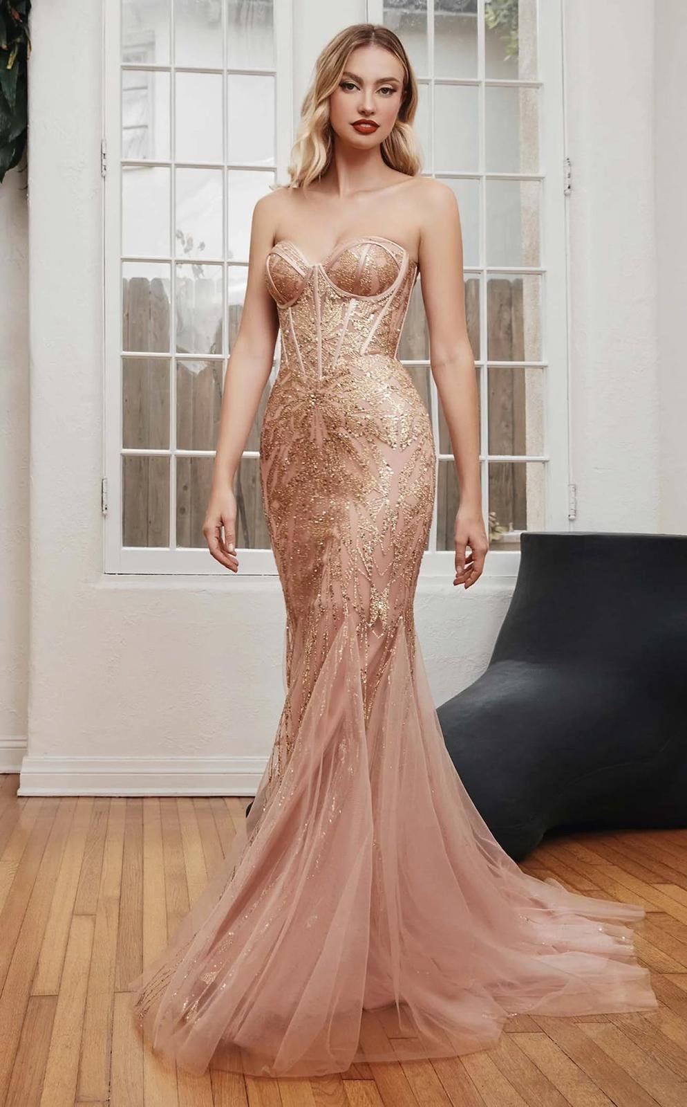 Este elegante vestido rosa claro en estilo strapless cuenta con un corset que resalta la figura. Con un diseño amplio y un velo largo que añade un toque de sofisticación, es perfecto para eventos especiales donde deseas lucir radiante.